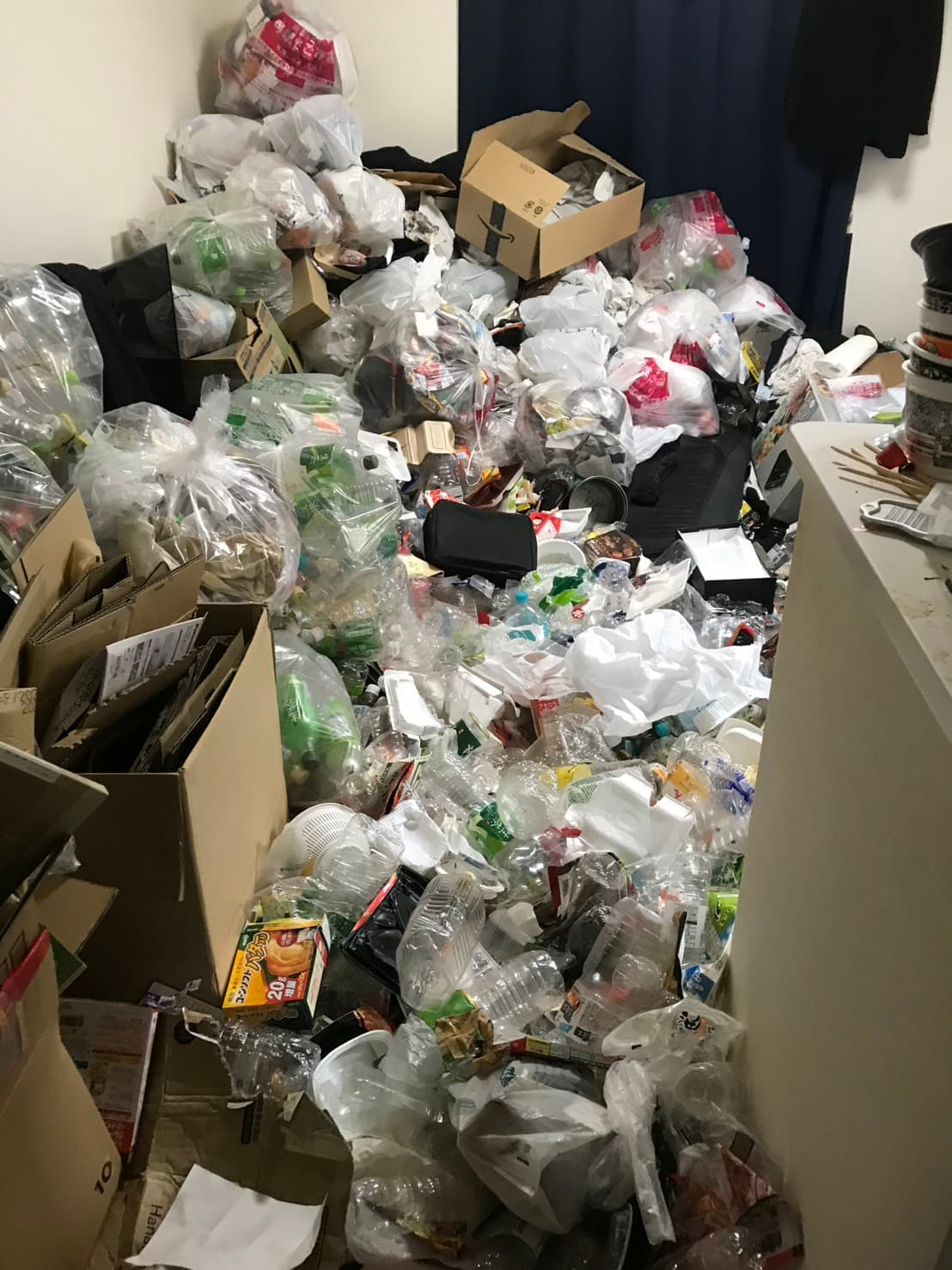 天井付近まで積み上がった不用品を仕分け・搬出。